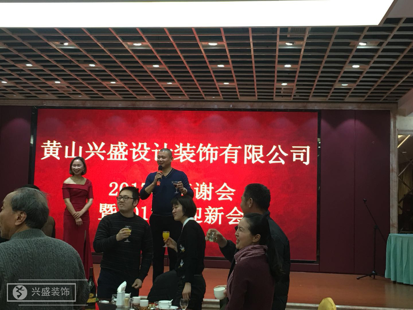 最后,黃山興盛設(shè)計(jì)裝飾有限公司董事長(zhǎng)與大家共同舉杯,祝愿興盛的明天更加美好!
